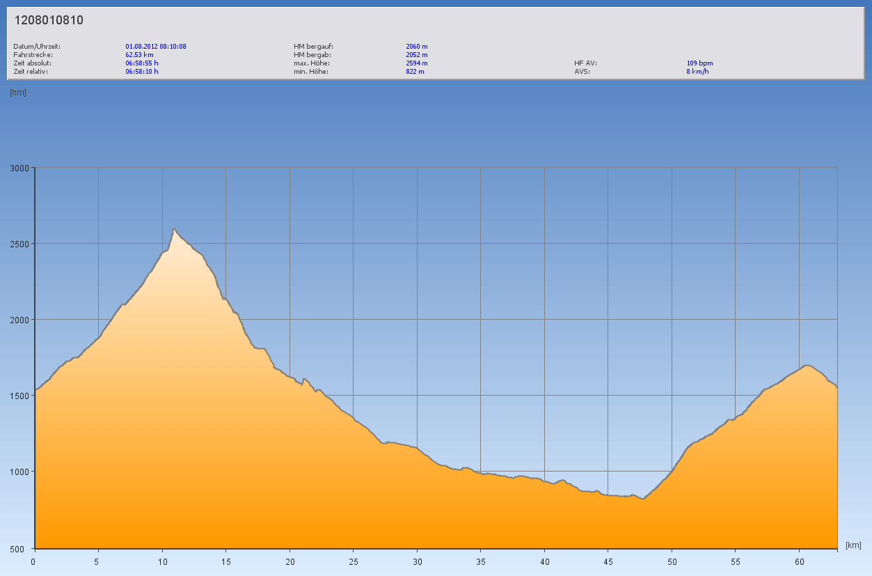 Kleine Anekdote am Rande: Von den Benefiz-Bikern lernten wir in Pezzo einen schönen Brauch kennen, den ich jetzt wohl in unsere Bikegruppe übernehmen werde. Einer von der Truppe trug über seiner Bib Short einen rosa Damenslip. Auf unsere verwunderte Frage, was das zu bedeuten hätte, erhielten wir eine erstaunlich Antwort: Es handelte sich um die Jammerhose – der Erste, der am Morgen jammert, muss diese Hose über den ganzen Tag tragen. 😉