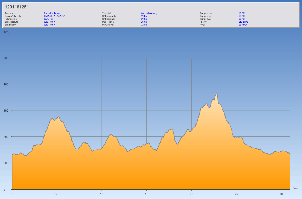 Die erste MTB-Tour in 2012 war ein echtes Highlight! Nach dem Schmuddelwetter die letzten Tage herrschte heute bestes Wetter über Aschaffenburg. Und dank der Temperaturen war der Boden gefroren und das Rad war nach der Runde fast so sauber wie vor der Runde. 😉