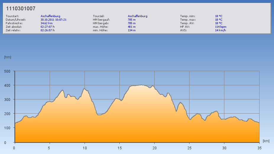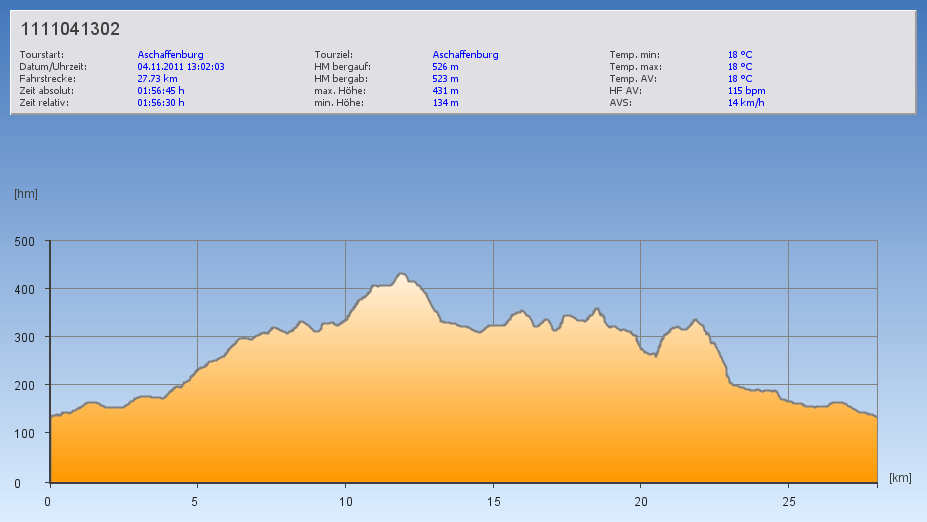 Und da die neue Saison vor der Tür steht, trainiere ich langsam wieder „etwas“ strukturierter. Heute fuhr ich eine lockere Runde im GA1-Bereich (im Schnitt bei 66% HRmax) nach Miltenberg und zurück. Obwohl – so 3 Stunden durchpedalieren war gegen Ende nicht mehr ganz sooo locker. 😉