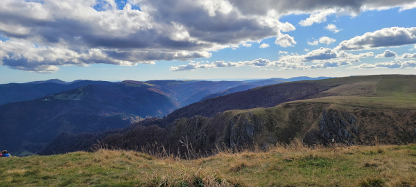 Der Gipfel liegt an der Route des Crêtes und ist mit dem Auto erreichbar. Deswegen herrschte hier oben ein reges Treiben diverser Ausflügler. Wir fanden trotzdem ein schönes Plätzchen. Allerdings pfiff der Wind hier oben recht ordentlich und nachdem wir uns gestärkt hatten, begannen wir mit dem Rückweg.