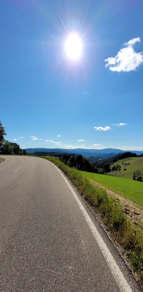 Allerdings kamen wir jetzt zu dem Abschnitt der Umleitung. Diese führte durch das nicht ganz unbekannte Glottertal. Schlagartig nahm der Verkehr zu und PKWs, Wohnmobile, Reisebusse und Motoräder teilten sich mit uns Marathonisti, nicht zur Freude aller, die Landesstraße 112. Bis zum Abzweig zum Kandel blieb das eigentlich so.