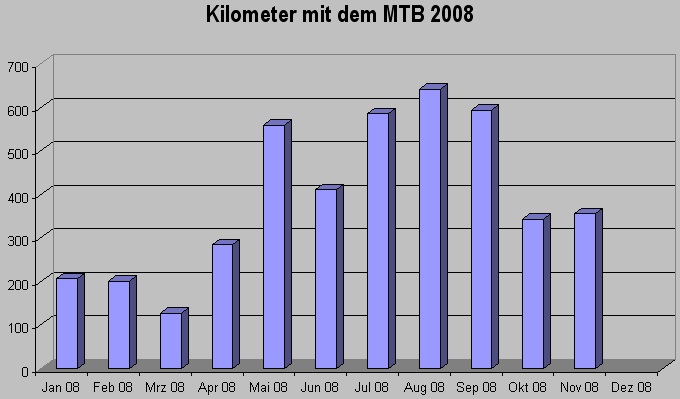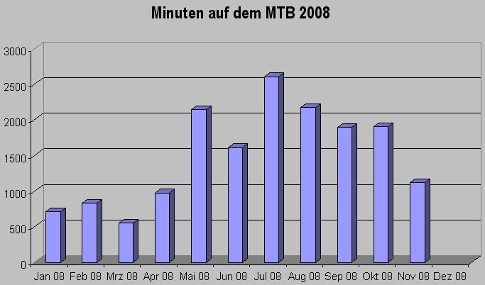 Es folgt die grafische Auswertung meiner Trainigswerte für das Jahr 2008 bis inklusive November: