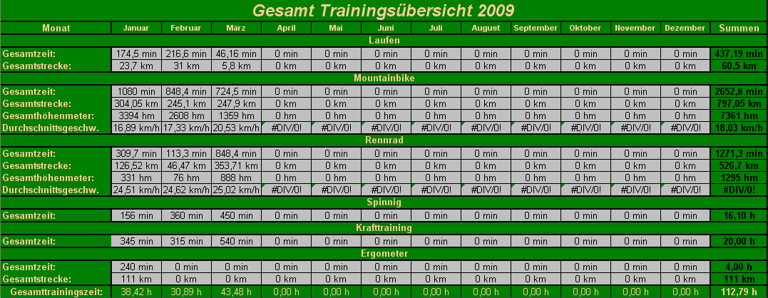 Es folgt die grafische Auswertung meiner Trainigswerte für das Jahr 2009 bis inklusive März: