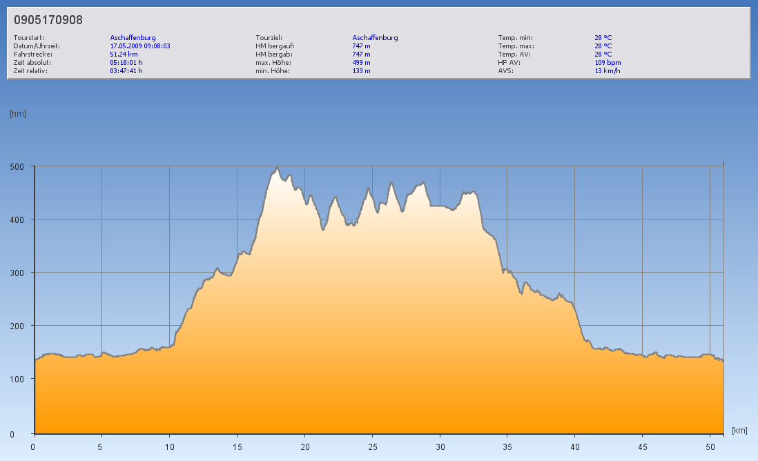 Hier die Daten (inklusive Hin- u. Rückfahrt von/nach Aschaffenburg):
