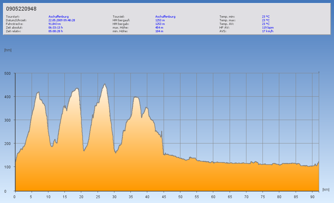 Nach ca. 45 km Trailspaß und Uphillkampf stärkten wir uns in Amorbach in einer Bäckerei. Schließlich stand da noch die Heimfahrt am Main an. Da möchte ich mich übrigens noch bei Thomas und Jens für den Windschatten bedanken. Tempo 30 am Main bei Gegenwind, das hat was… 😉