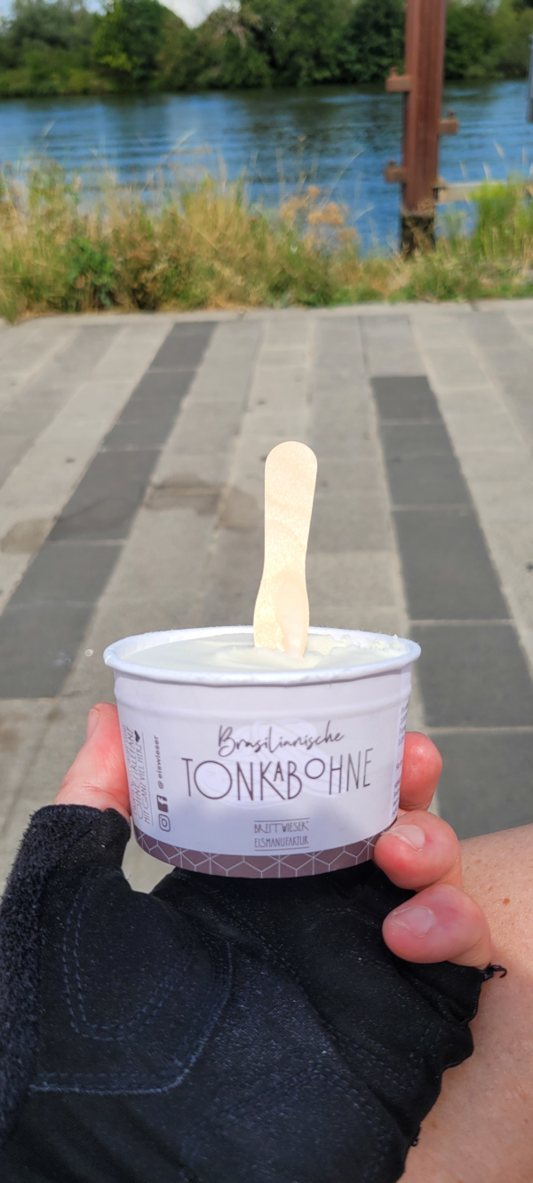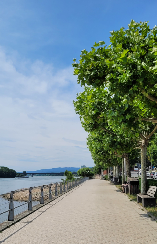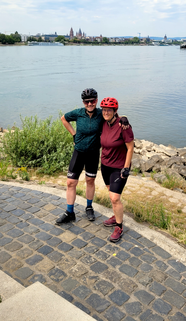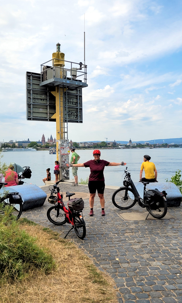 Von einer Vorbereitungsfahrt zu ersten 500+ Tour kannte ich ich den nun folgenden Abschnitt entlang des Rheins und er war mir in bester Erinnerung geblieben. Damals pedalierten wir an einem Tag zum Niederwalddenkmal und zurück. Besonders das mediterrane Flair am Mainufer beindruckte mich damals nachhaltig. Und da uns noch gut 20 Kilometer zum Vervollständigen der 100 Kilometer fehlten, wählte ich bei der Tourenplanung Ingelheim als Etappenziel.