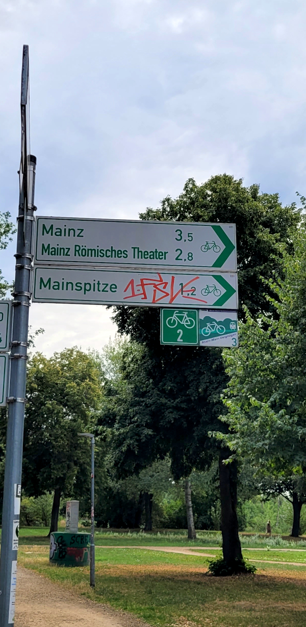 Eine besonders schöne sommerliche Radtour unternahmen meine Frau und ich im letzten Sommer. Schon lange wollte ich mit dem Rad zu dem Punkt fahren, an dem der Main in den Rhein fließt – der sogenannten Mainspitze.
