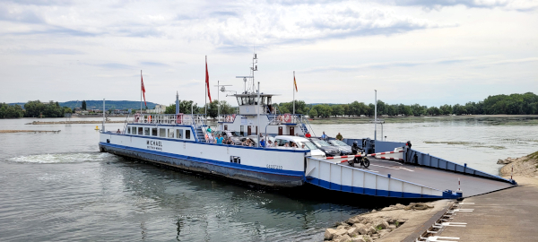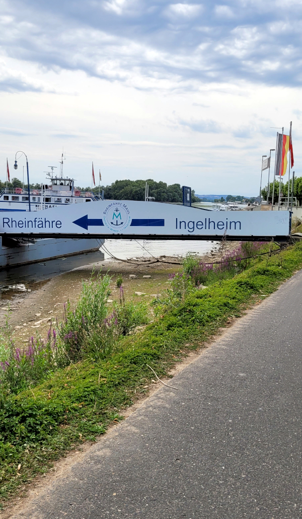 Das Stück bis zur Fähre verging wie im Fluge. In Östrich-Winkel setzten wir über den Rhein drüber. Von der linksrheinischen Anlegestelle war es jetzt nur noch ein Katzensprung bis zu unserem Hotel in Ingelheim.