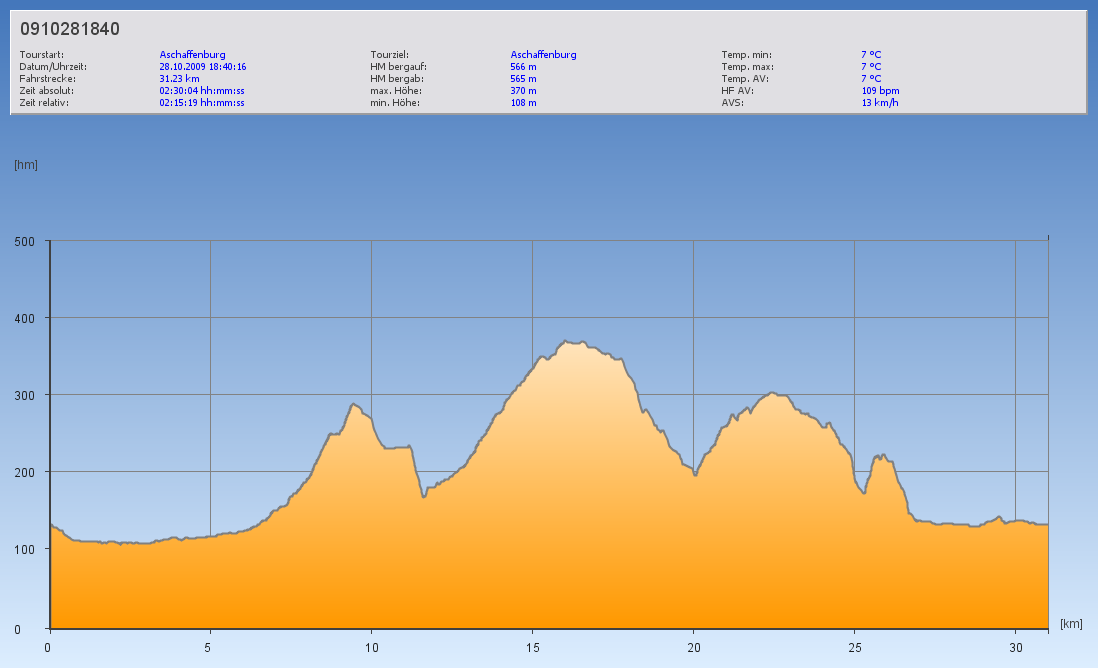 Nightride Veröffentlicht am 28.10.2009 von Thorsten Faderl Heute fuhren wir noch einmal die Strecke vom 21.10. Diesmal in etwas anderer Besetzung. Fahrzeit: 02:15:19 Kilometer: 31,23 km Durch. Geschw.: 13,85 km/h Max. Geschw.: 32,4 km/h Höhenmeter: 566 m Rad: Wheeler Falcon 40 Keep on biking!