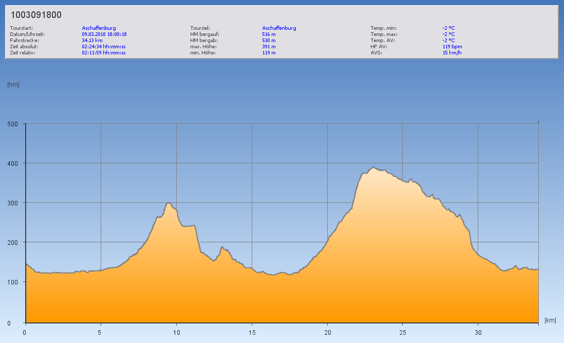 Die Wetterverhältnisse lassen jetzt wenigstens wieder Radtouren zu. Beim heutigen Nightride fuhren wir die Strecke vom Sonntag mit ein paar Änderungen. Wir nahmen die Auffahrt durch das Fahrbachtal mit, dafür ließen wir die Schleife über Breunsberg und Johannesberg weg. Die Trails im Strietwald und oberhalb von Glattbach machten viel Spaß. Es gab allerdings noch einige Stellen mit Schnee und vor allem mit hinterhältigen Eisplatten. Hier war Vorsicht angesagt! Wir schafften es aber die Runde sturzfrei zu beenden. Etwas wärmer hätte es halt sein können. Auf der Höhe bei Rückersbach wehte ein schneidender Wind, der uns davon abhielt, die Aussicht über die Mainebene und in die sternklare Nacht zu genießen.