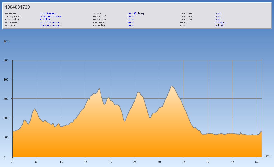 Aschaffenburg – Schmerlenbach – Sailauf – Eichenberg – Rottenberg – Wenighösbach – Daxberg – Hohl – Hörstein – Kleinostheim – Mainaschaff – Aschaffenburg