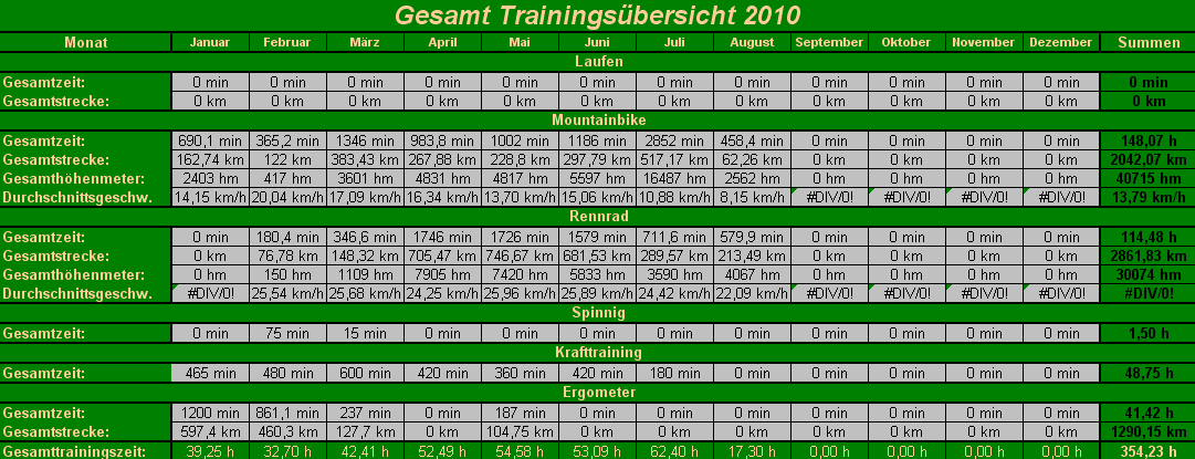 Es folgt die grafische Auswertung meiner Trainigswerte für das Jahr 2010 inklusive Juli (bissi vom August ist z. T. auch schon dabei):