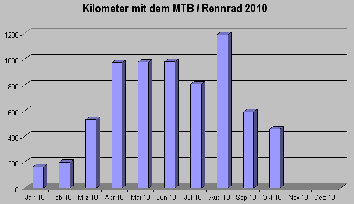 Es folgt die grafische Auswertung meiner Trainigswerte für das Jahr 2010 inklusive Oktober.