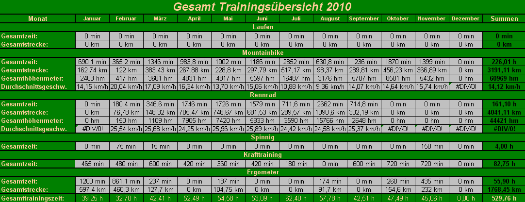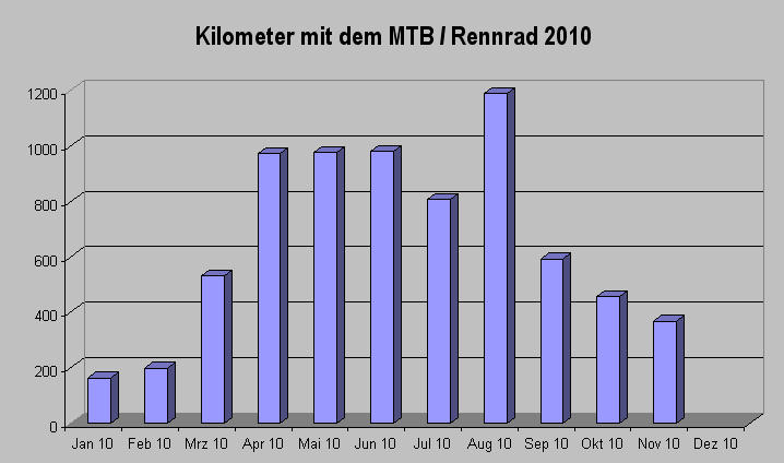 Es folgt die grafische Auswertung meiner Trainigswerte für das Jahr 2010 inklusive November.