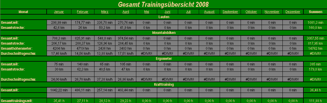 Hier kommt die grafische Auswertung meiner Trainigswerte für den Monat April: