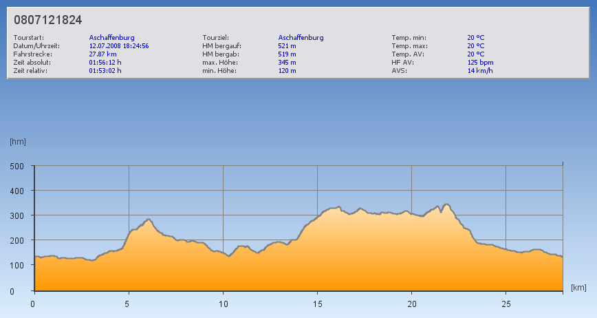 Voller Vorfreude auf die erste Ausfahrt mit meinem neuen Rad fuhr ich nach Hause. Schnell wechselte ich den Sattel, stellte noch ein paar Kleinigkeiten am Cockpit um, montierte meine Polar um und begab mich auf die Jungfernfahrt. Es war jetzt doch etwas später geworden, und ich wollte in möglichst kurzer Zeit möglichst viele Fahrsituationen testen. So entschied ich mich für die Tour Weißbergschleife.