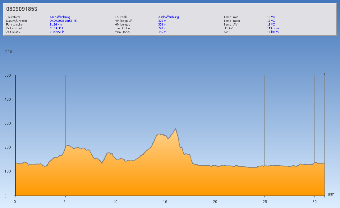 Björn, Matthias und ich starteten erst gegen 19.00 Uhr in unsere Feierabendrunde. Vorsorglicherweise hatten wir unsere Lampen dabei. Wir fuhren an der Bahnlinie bis zur Unterführung vor Obernau.