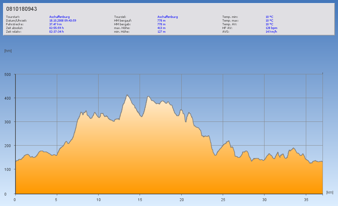 Das herrliche Herbstwetter mussten wir heute Morgen dann doch für eine kurz Tour nutzen. Von Aschaffenburg fuhren wir durch Schweinheim zur Fühstückseiche. Um den Weißberg und den Pfaffenberg führte der Weg weiter zum Weißen Bild. Von dort wollten wir eigentlich hinab zum Antonius Bild, haben aber den Abzweig verpasst und standen auf einmal oberhalb von Leidersbach. Und so mussten wir uns wieder über den Salzlecken hinaufkämpfen. Schließlich fanden wir den richtigen Trail doch noch. Über die Altmannshöhe und die Sodenburg gelangten wir schließlich nach Soden. Wir legten noch einen kurzen Abstecher über den Sulzberg ein, um dann durch den Obernauer Wald in Richtung Heimat zu fahren.