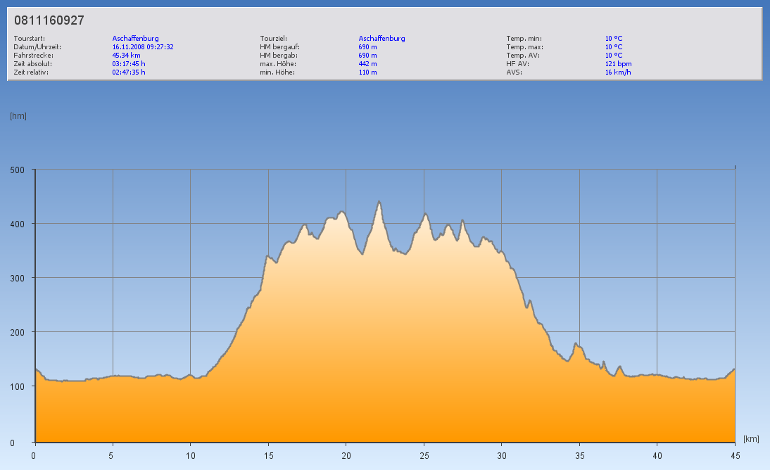 Die heutige Jedermanntour unseres Vereins führte uns zum Hahnenkamm. Bei bescheidenem Wetter starteten wir um 9.30 Uhr in Aschaffenburg und fuhren mit den Rädern zu unserem Treffpunkt am Fuße der Rückersbacher Schlucht. Ziemlich pünktlich gegen 10 Uhr kamen Uwe, Björn und ich dort an. Thomas und Thorsten warteten schon.